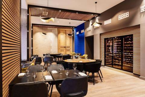 | Return from auction Market fish cooked at low temperature, millefeuille of yellow and green zucchini with zathar, enhanced with a condiment of kalamata olives and caramelized garlic. |
